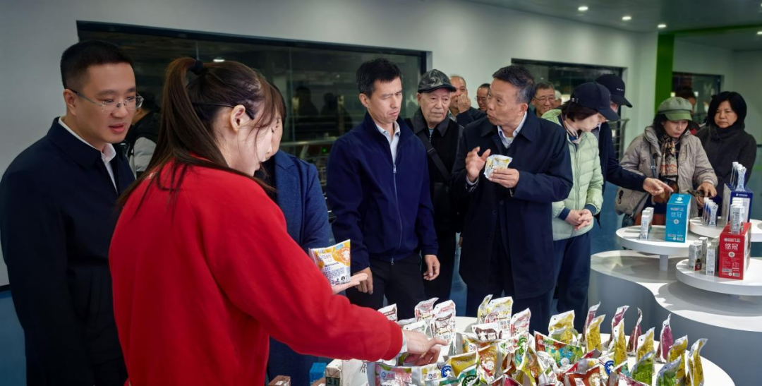 随后,老同志们走进始创于1957年、历经68年岁月积淀的中华老字号——海河乳品智慧工厂,沿着企业改革发展的足迹,感受品牌焕发的崭新活力。在生产车间,透过透明玻璃,国际领先的自动化全流程生产线和全链条智能管理系统尽收眼底。老同志们凝神观看,深刻体会到天津高质量发展的强劲势头与硬核支撑。步入品牌形象区,复原的上世纪80年代海河奶站场景瞬间唤起了大家的共同记忆——在那个奶资源相对紧缺的年代,海河乳品滋养了一代又一代天津人。海河乳品对“家门口放心品牌”的品质坚守,也让大家深刻感受到天津产业发展的蓬勃生机。