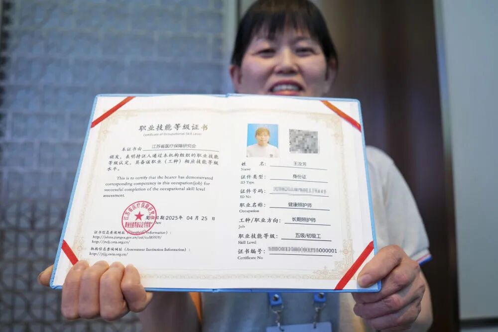 十年的探索,为全国建立长期护理保险制度蹚了路子、打了基础。各地成熟做法与实践成果被充分吸收借鉴、系统集成转化,为制度在全国范围推开提供了坚实支撑。 十年后的今天,党和政府对加快建立长期护理保险制度作出全面系统部署,逐一细化保障对象、筹资标准、保障标准等相关政策。 政策惠民的关键是落地见效,如何让长护险更好地落到实处?习近平总书记有着深远考量,“要坚持医养结合,逐步建立长期护理制度,为老年人提供治疗期住院、康复期护理、稳定期生活照料、安宁疗护一体化的健康养老服务”。 作为最早一批长护险试点地区之一,四川省都江堰市的青城山镇中心卫生院依托“医养结合”模式,为当地失能群体提供全方位照护服务。 卢奶奶是受益者之一。80多岁的她因年老体弱丧失部分生活自理能力。在卫生院,除了日常照料,卢奶奶还得到了监测生命体征、专业康复指导等医疗服务。 “我们始终牢记总书记的重要指示,牢牢扛起‘医’的核心责任。”该院负责人聂曾波说,团队把专业医疗服务融入日常照护全流程,努力打通长护险服务“最后一公里”,把温暖送到老人身边。 目前,全国长护险定点服务机构达1.2万家,是试点初期的10倍,服务供给能力不断提升。 ![]() 筑基:从基础保障到专业照护 “阿姨,咱们慢慢来,不着急。”上午10点,河南开封一户居民家中,评估员张亚丽正蹲在卧床老人李阿姨的床边,仔细观察老人是否能自主翻身、抬手。 评估过程中,她发现老人虽然失能,但精神尚可,便主动建议护理机构增加一些简单的认知训练活动,并叮嘱护工注意老人的营养搭配。 这样的场景对张亚丽来说已是常态,她深知每一次评估都关乎老人的生活质量,“评估不仅是打分,更是为老人争取更好的照护资源”。 2025年全国两会期间,习近平总书记在参加江苏代表团审议时强调,要培育好老年医护职业。 随着长期护理保险制度的逐步推开,一支支专业评估队伍、照护队伍应运而生,成为守护失能老人晚年生活的关键力量,让总书记的牵挂落到实处、暖在人心。 ![]() 2025年4月28日,首批长期照护师职业技能等级证书颁发。新华社记者 李博 摄